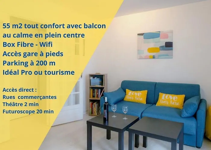 Poitiers Fuar Merkezi ve Infantry Regiment'a arabayla birkaç dakikada ulaşılabilir. Jasmin Citronnelle, Les Archives; daireden yürüyerek 5 dakika mesafededir. Bu daire ünlü replicas of the Statue of Liberty çevresinde yer almaktadır.